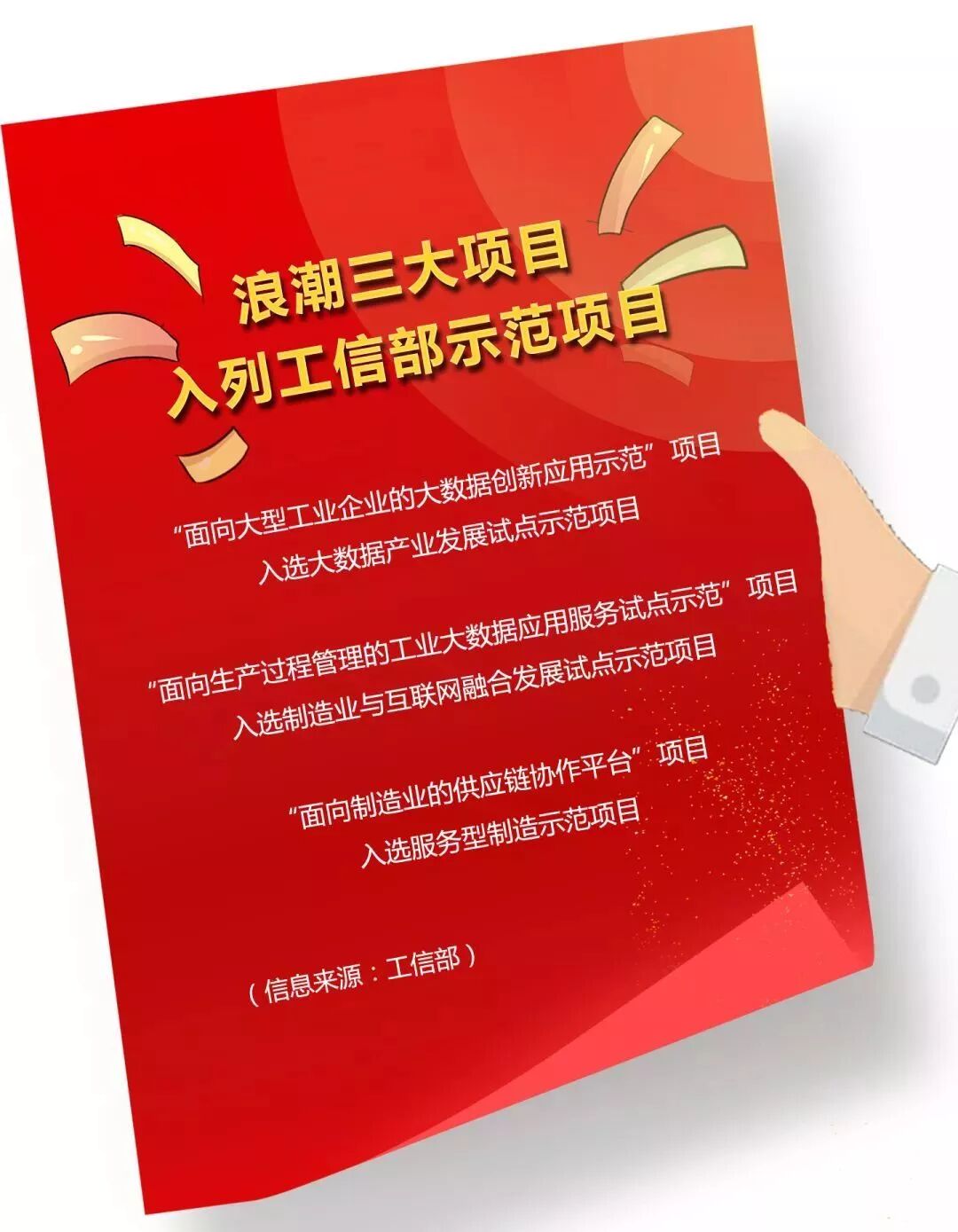 浪潮“面向大型工业企业的大数据创新应用示范”项目经过专家组评审,成功入选工信部2018年大数据产业发展试点示范项目;